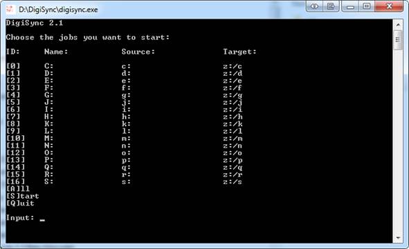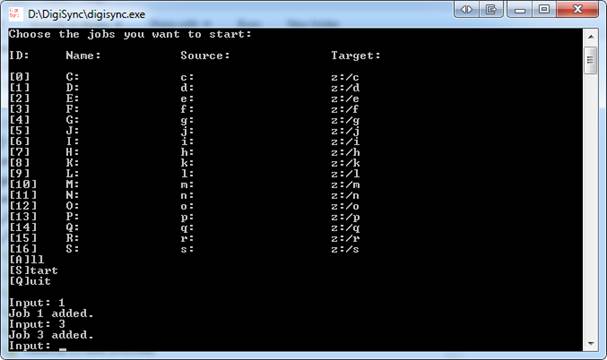 To start the synchronization input "S" (for Start) and hit ENTER.